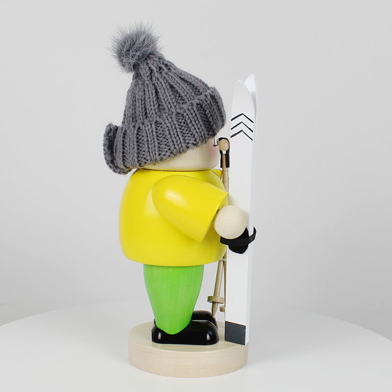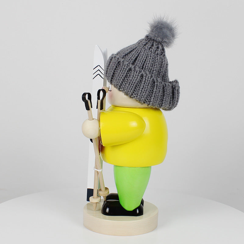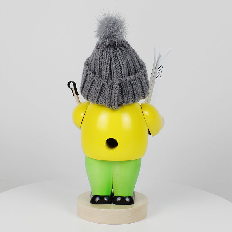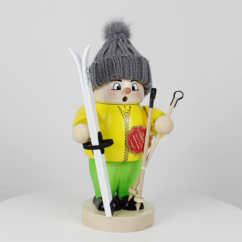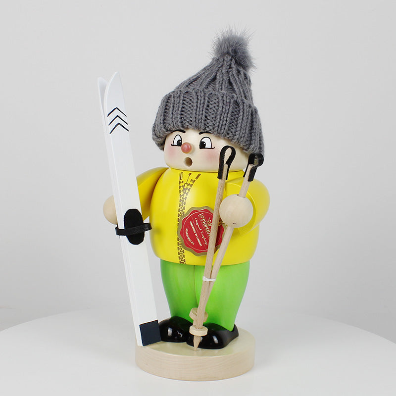 Infuse the scent of Christmas into your home with the help of our Big Smoker Ski Boy. His stylish wool hat keeps him warm and he wears a bright yellow jacket, so you can't miss him when he is dashing down the slopes. With his ski and ski sticks at the ready, he is surely thinking about his next fun trip down the mountain.