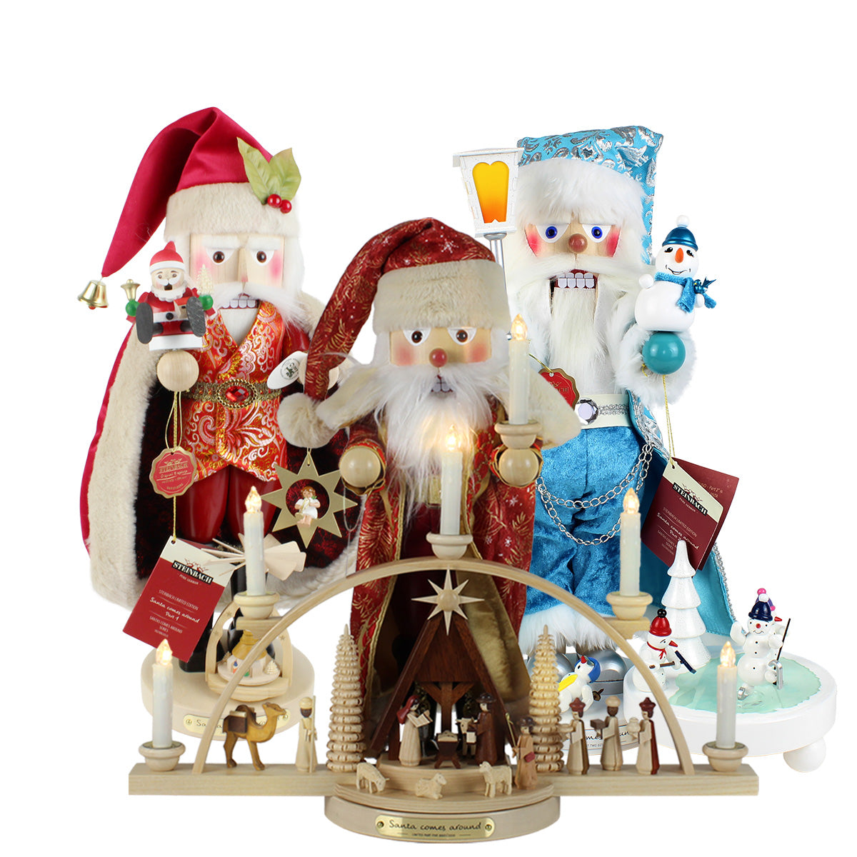 Auf der Suche nach den besten Partnern bewegt sich unser Steinbacher Weihnachtsmann durch die alte Welt. Ein Besuch im Spielzeugdorf Seiffen ist daher genau das Richtige. Denn hier ist immer Weihnachtszeit! Beeindruckt vom vielfältigen Kulturangebot hat unser Weihnachtsmann mit „Richard Glässer SEIFFEN“ seine erste Partnerfreundschaft geschlossen und es geschafft, die sorgfältig ausgewählten Details zweier erzgebirgischer Traditionsbetriebe zu vereinen.