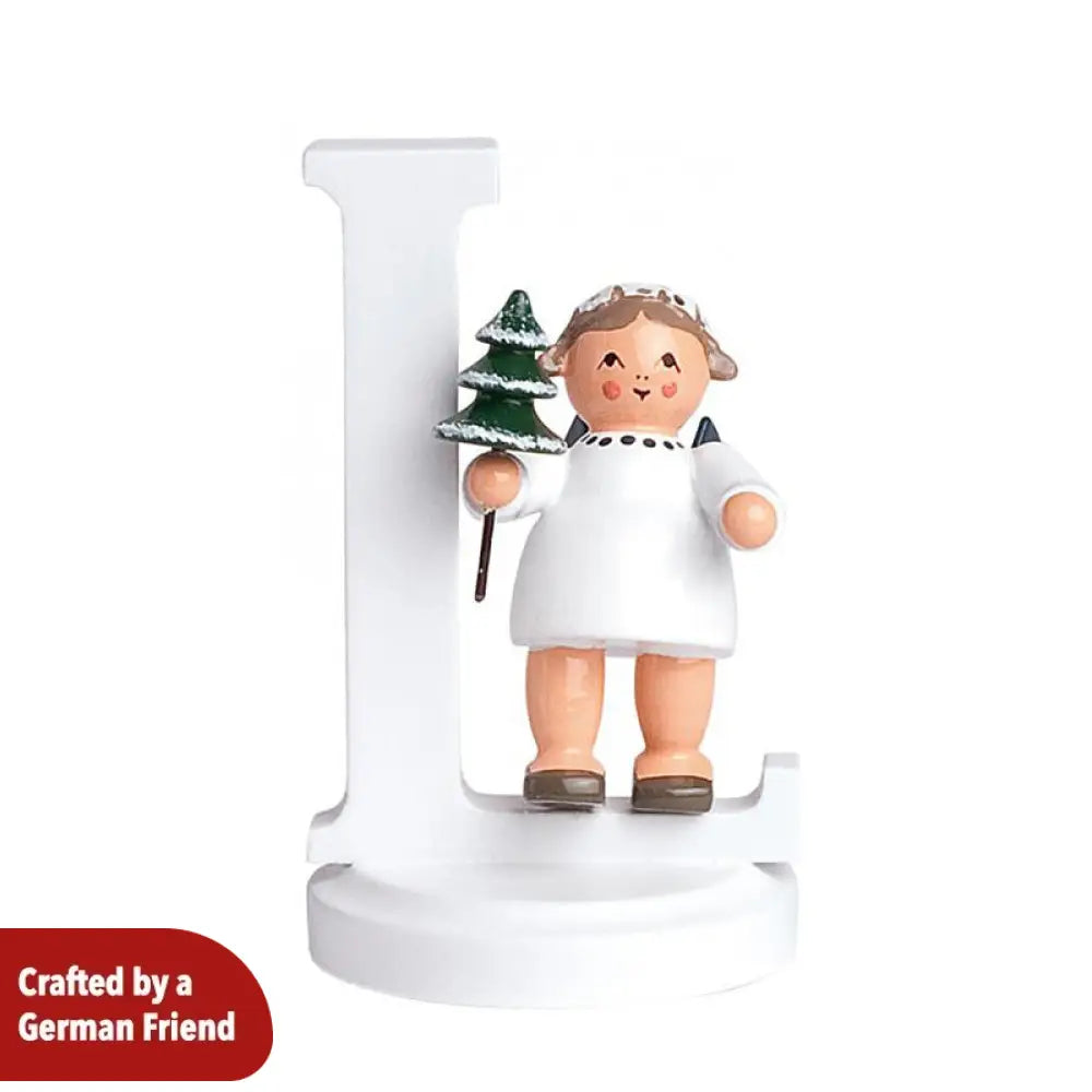 Ein süßer Engel, der neben den Buchstaben L steht, von unseren Freunden KWO (Kunstgewerbe-Werkstätten Olbernhau GmbH). Sammeln sie alle vier Engel um das Wort LOVE zu erhalten.