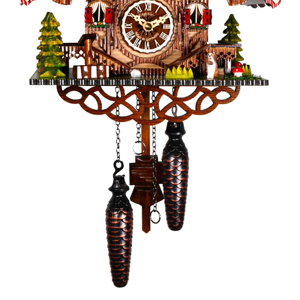 Operated by a reliable quartz movement, this clock offers hassle-free timekeeping with minimal maintenance. The AAA battery-powered mechanism ensures smooth operation, eliminating the need for winding. Traditional pinecone-shaped weights and an intricately carved pendulum enhance the authentic Schwarzwald aesthetic.