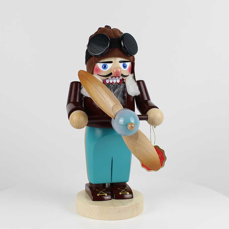 Jeden Tag zielt unser Chubby Aviator darauf ab, die erstaunlichste Flugleistung zu erbieten. Unser Aviator ist ein bemerkenswertes Beispiel für moderne Holzkunst, die beeindruckend ist, im Erzgebirge gefertigt. Die braune Fliegerjacke hat ein weiches Wollfutter am Kragen und die blaue Pilotenhose wird visuell von der Mütze des Aviators komplimentiert, die ebenfalls blau gehalten ist. Unser Held des Himmels und ein Traum für jeden Steinbach Liebhaber.