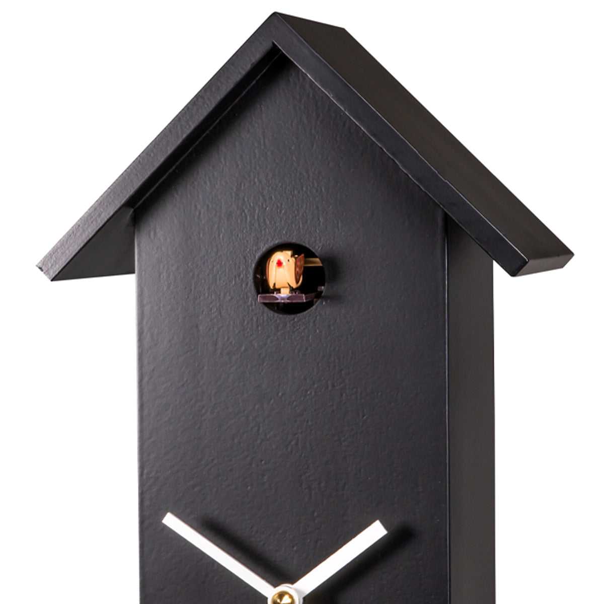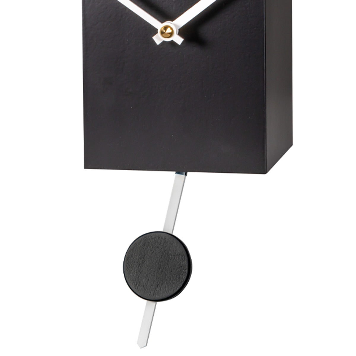 This sleek and minimalist Modern Black Quartz Cuckoo Clock is a contemporary take on the traditional cuckoo clock. Crafted from solid wood with a clean, geometric design, it features a matte black finish that seamlessly blends into modern interiors. The sharp contrast of the white hands against the dark background ensures easy readability, while the simple pendulum adds a touch of elegance.