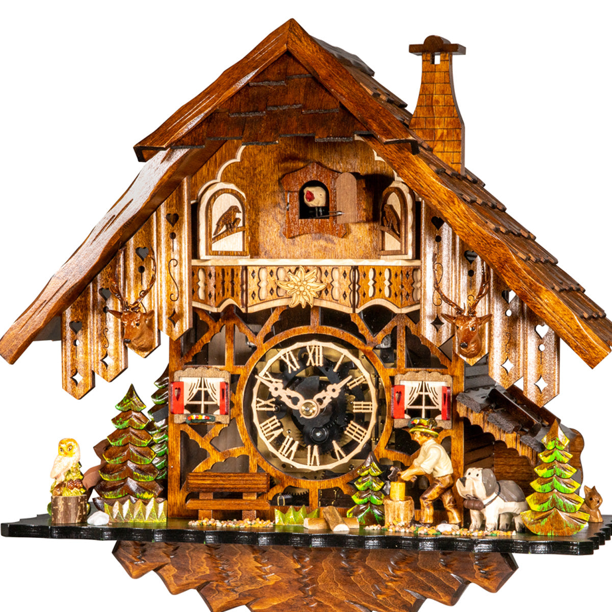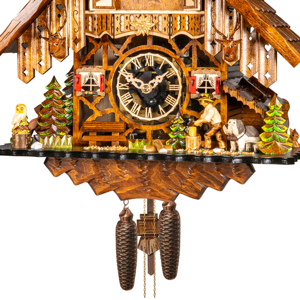 Traditional Black Forest Cuckoo Clock with Moving Woodchopper - 8-Day Movement