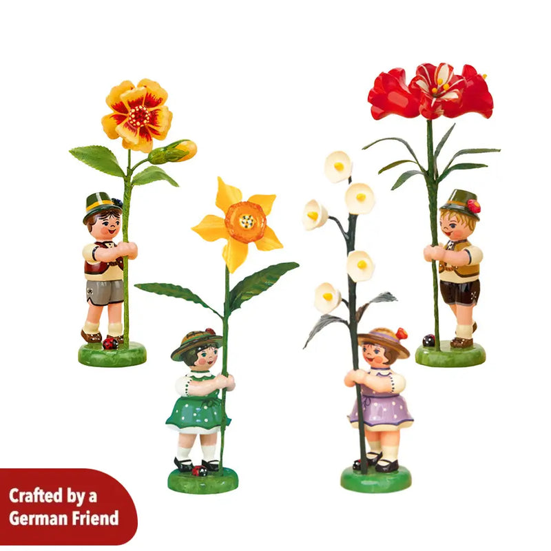 Each figure is lovingly hand-painted in the picturesque Ore Mountains of Germany – a region known for its fine woodcraft and storytelling artistry. Together, they create a harmonious spring scene that brings joy and tradition to any shelf or centerpiece.