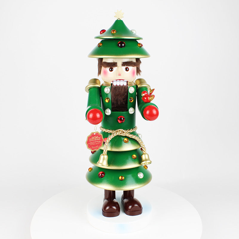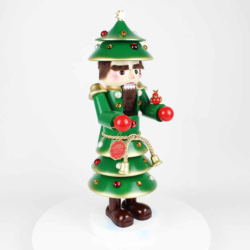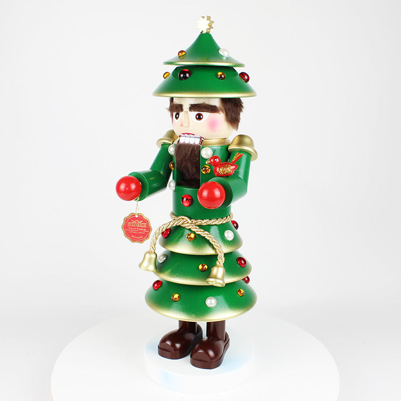 The Christmas tree is adorned by many on Christmas Eve. A classic green Christmas tree is this bearded nutcracker, abundantly decorated with Christmas baubles and the star on the top. He was made with great attention to detail in the Erzgebirge and is "Made in Germany".