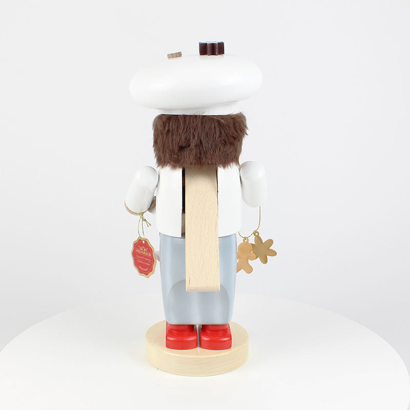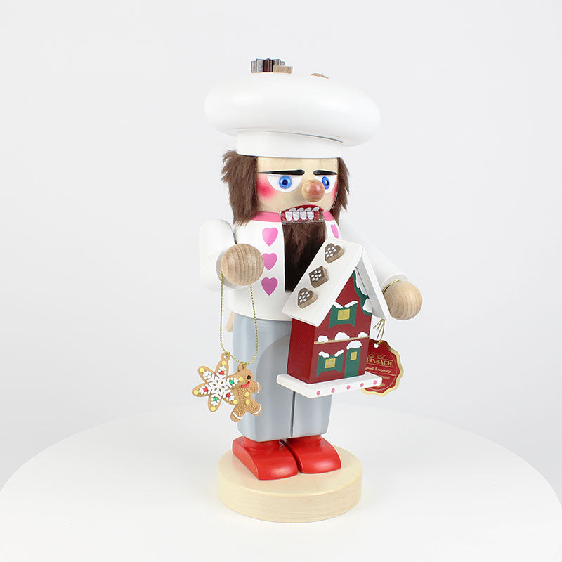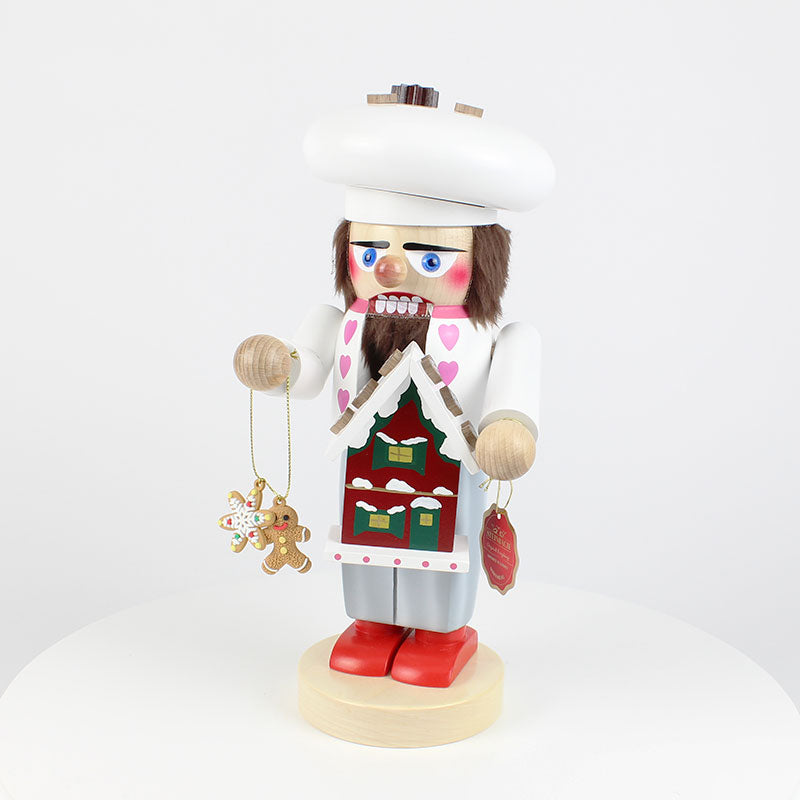 Dressed in his traditional baker’s robe and topped with an oversized baker’s cap, this jolly figure is the embodiment of festive cheer and culinary craftsmanship. Every detail, from the intricate icing on the gingerbread house to the little hearts on his robe, tells the story of a baker who takes pride in his work, bringing joy to everyone who encounters his creations.