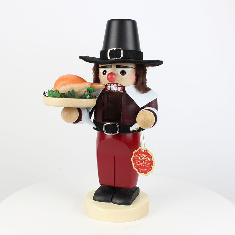 Handcrafted with meticulous care in Germany by Steinbach, this nutcracker is a delightful addition to your holiday décor, celebrating both the craftsmanship of traditional wood art and the enduring story of the Pilgrims. Our Chubby Pilgrim with Turkey Nutcracker serves as a reminder of the historical roots and the warmth of togetherness that define this beloved holiday.