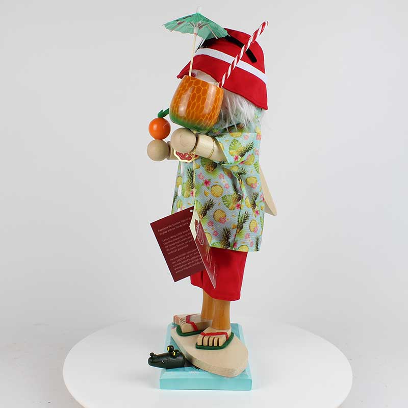He is the SECOND nutcracker in our new "SANTA OF THE US" series. It is strictly limited to 2,000 pieces and impresses with its high-quality workmanship and carefully selected details, such as the beach accessories, the cocktail with umbrella, the Hawaiian shirt or the surfboard on which our Florida Santa rides the next waves.