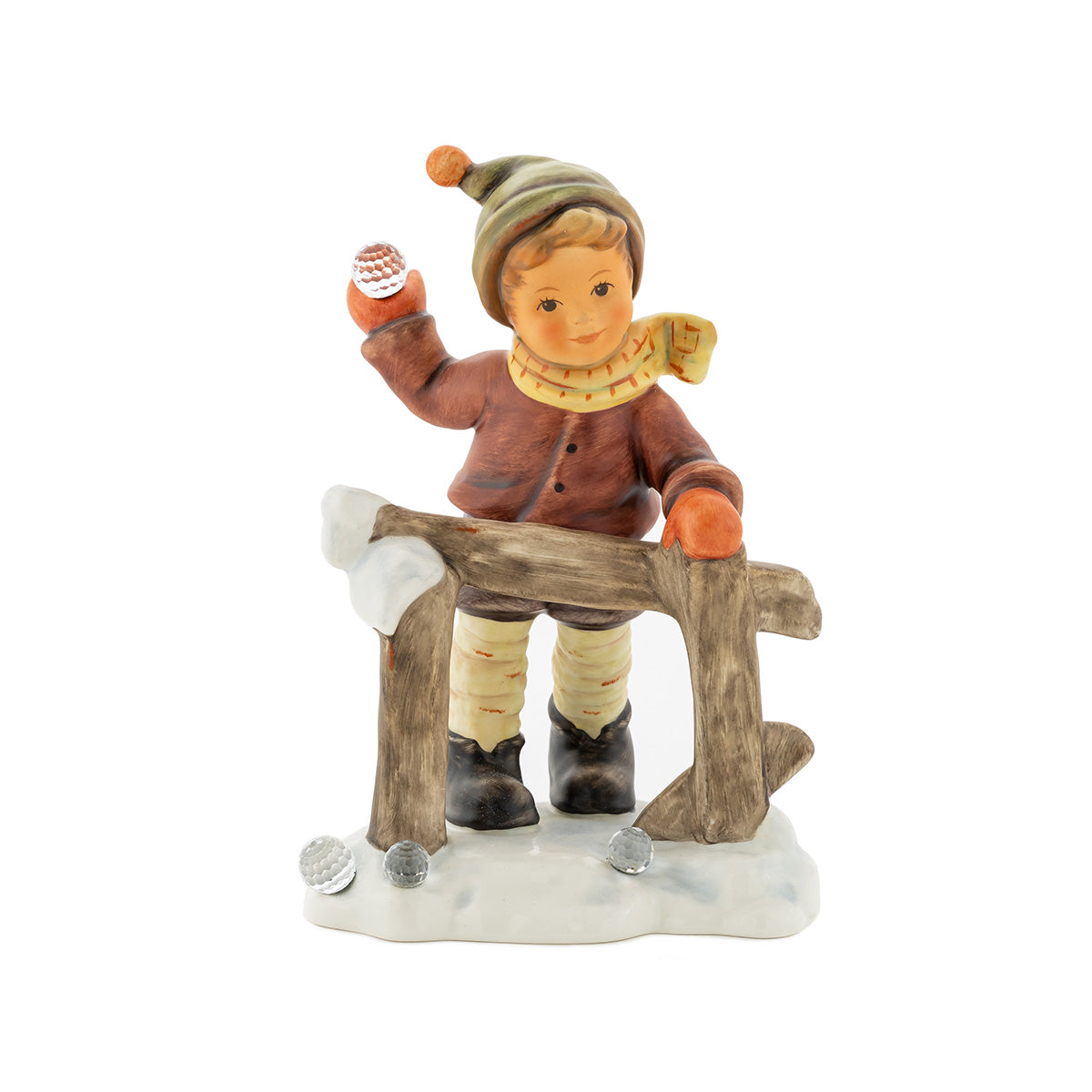 Well equipped with a supply of snowballs made from precious Swarovski crystals, the little boy is ready to start a fun snowball fight. His “opponent” is Hum 2306, a girl with a snowman, which was created to perfectly complement this piece. Both figures make a charming winter display together but also bring plenty of seasonal cheer when showcased on their own.