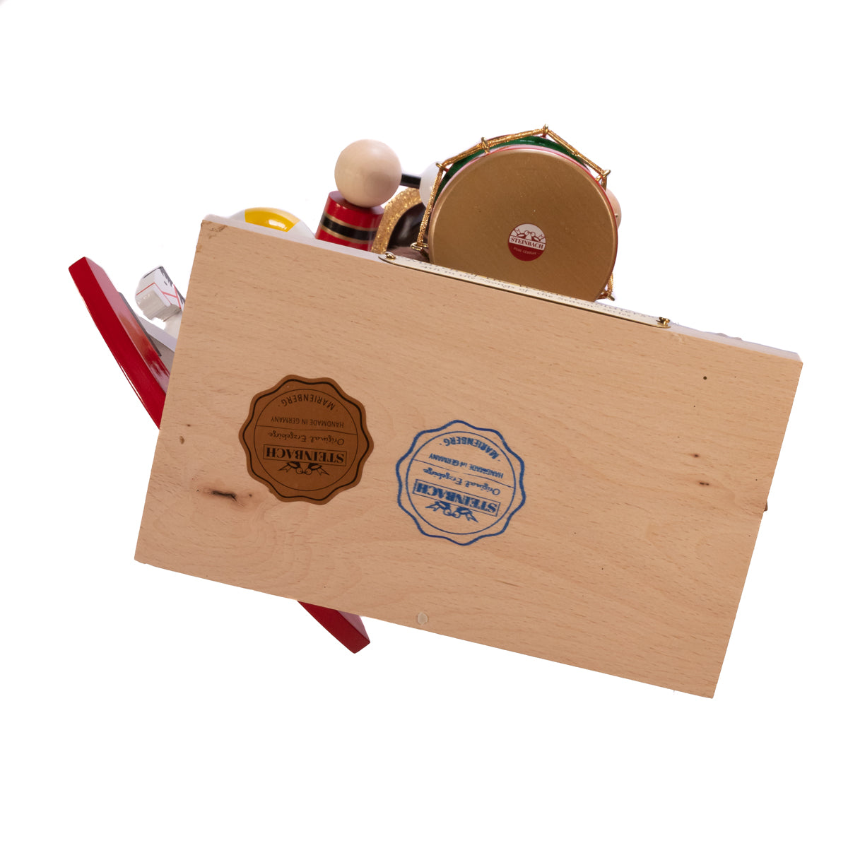 This 18 inch wind-up musical Marching Toy Soldier nutcracker is the perfect addition for every collection and new in 2019. While playing the drum, this Marching Toy Soldier is surrounded by toys such as a rocking horse, blocks and a ball. When wound, this musical piece plays the tune "March Of The Wooden Soldier." Like all of our creations, the Marching Toy Soldier nutcracker is crafted in Germany with finest care and attention to detail.