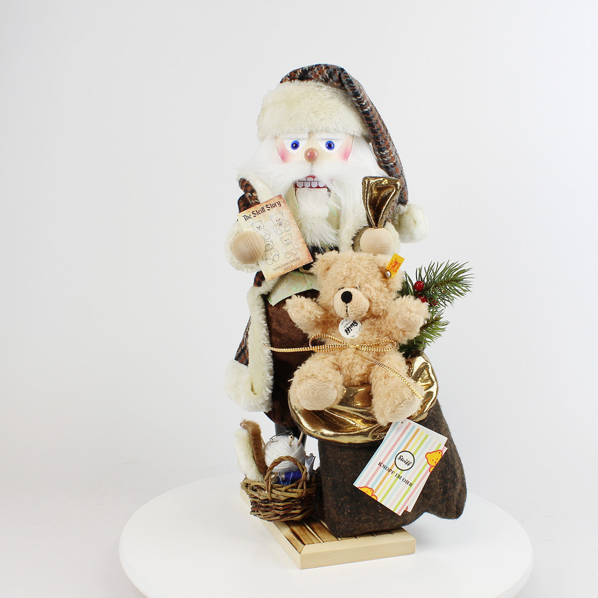 "SANTA COMES AROUND - Part 3" is the third item of the "SANTA COMES AROUND" series and impresses with its detailed implementation, extremely high-quality workmanship and carefully selected accessories. While Santa, dressed in an immaculately fashionable outfit, was made by Steinbach himself, he has a beautiful Teddy bear made by Steiff in his gift bag.