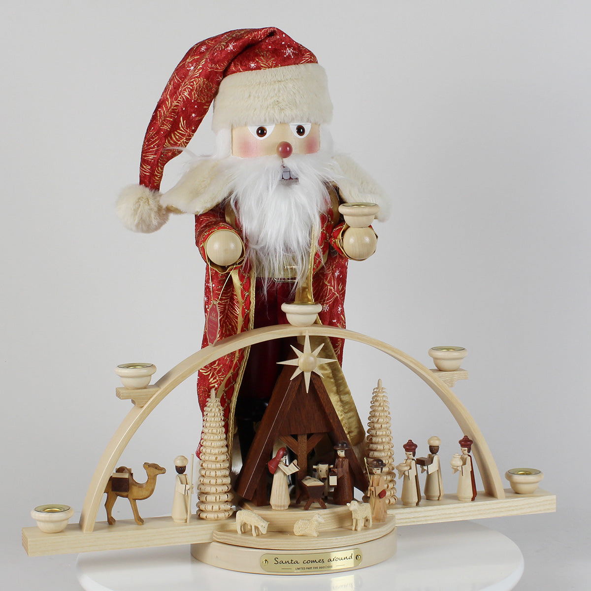Inspired by their timeless artistry, Santa has chosen to carry a beautifully carved Müller Schwibbogen with him on his journey. This year's piece combines Steinbach's legendary nutcracker craftsmanship with Müller’s intricate woodwork: a glowing nativity scene framed by candlelight and crowned with the iconic Christmas star.