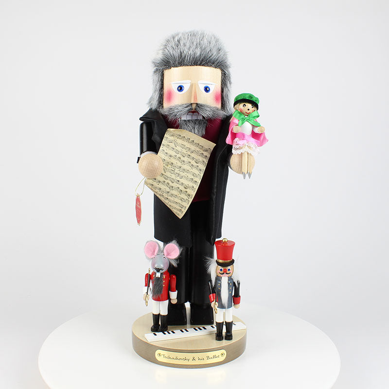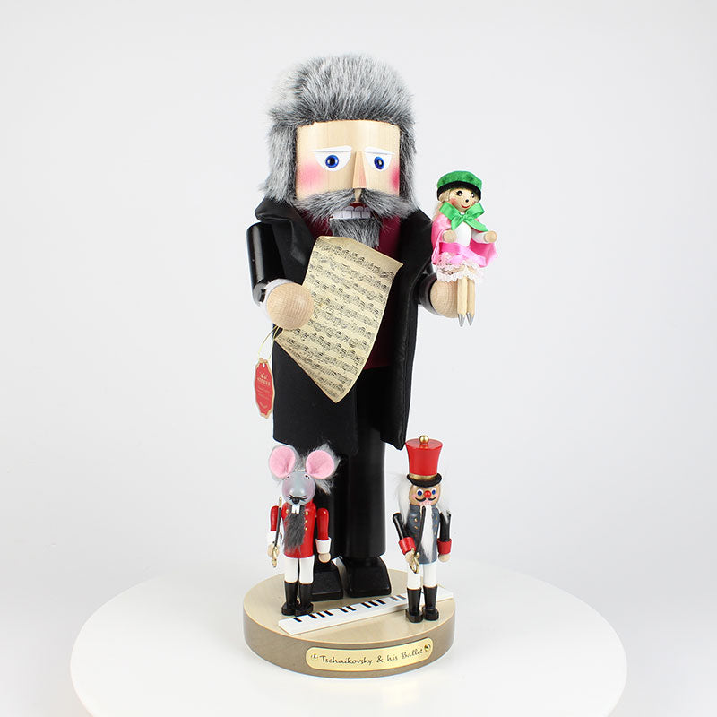 Thirdly SN20BN2025 Tchaikovsky and his ballet: Our Tchaikovsky presents the notes and most important characters of his most famous ballet 'The Nutcracker'. In loving detail, each small figure is recreated in detail to the original. Tchaikovsky himself wears a white shirt and a chic suit made of premium-quality material. On the base is next to the opera-figures also a superimposed keyboard. Everything 100% handmade "Made in Germany".