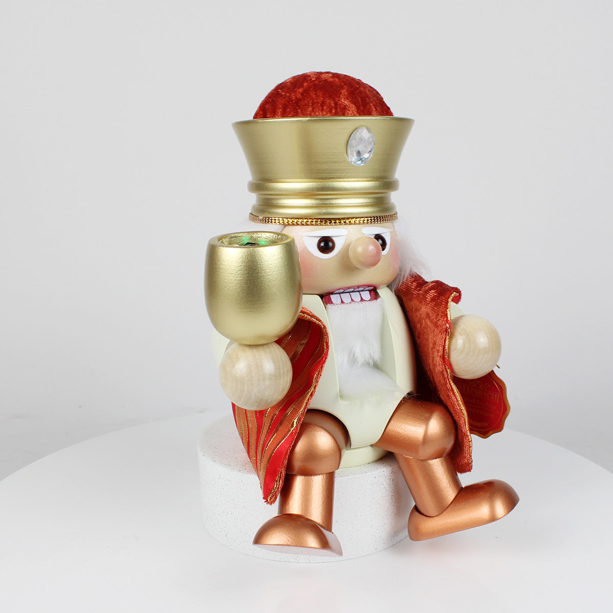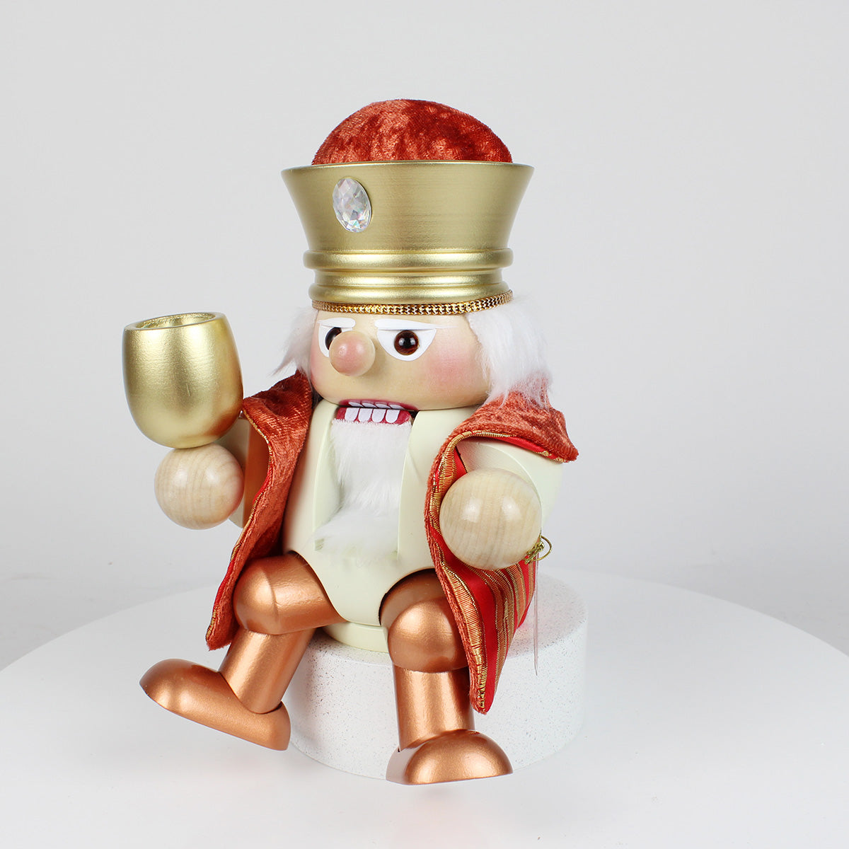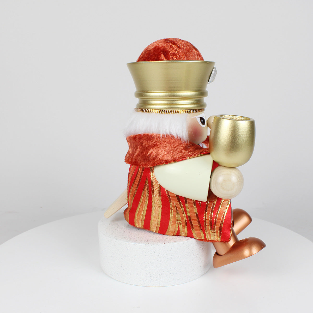Expertly handcrafted in Germany, this Melchior Shelf Sitter Nutcracker is a perfect addition to your nativity collection, embodying the same exquisite attention to detail and quality that Steinbach is renowned for.
