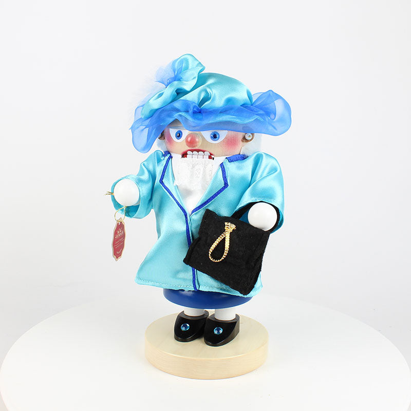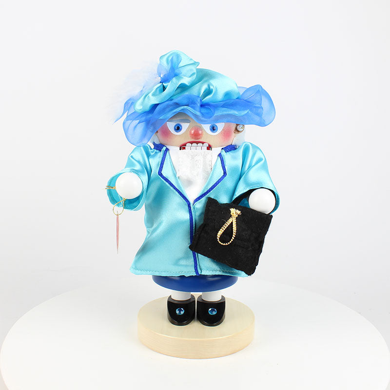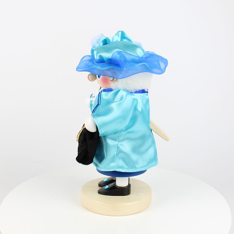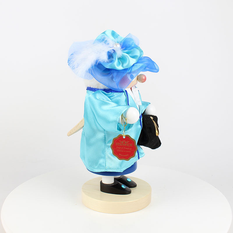Our 10.5" tall Queen is considered the most diligent monarch: No one sat on the throne longer than she did. She leads a life between traditions and strict royal etiquette. She is recognizable by her turquoise-blue robe and her matching hat creation. In her hand she is holding a black handbag. Honor to whom honor is due ... - Handcrafted with love and care in detail - "Made by Steinbach"